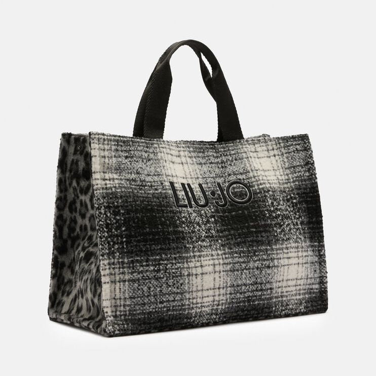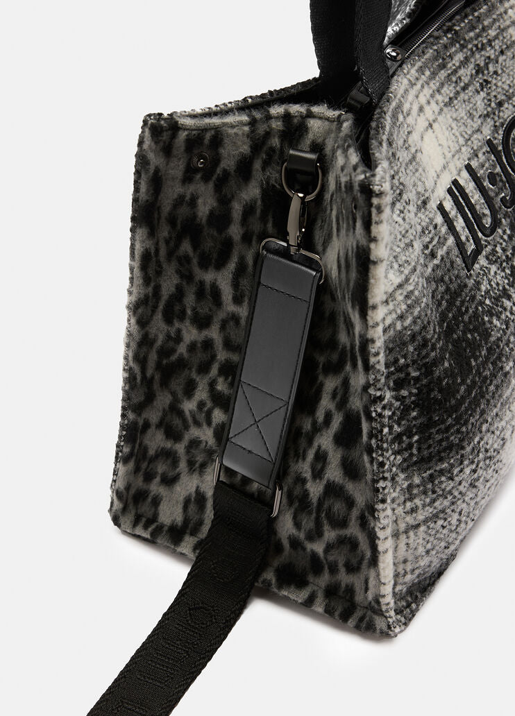 Carteira 100% poliéster | Bolsa tote grande preta | Estampa animal print | Logotipo bordado na frente | Laço com broche de pedraria \ Alças confortáveis \ Alça de ombro ajustável e removível em gorgorão com logotipo | Fecho de zíper | Este acessório também pode ser usado no ombro e/ou na transversal