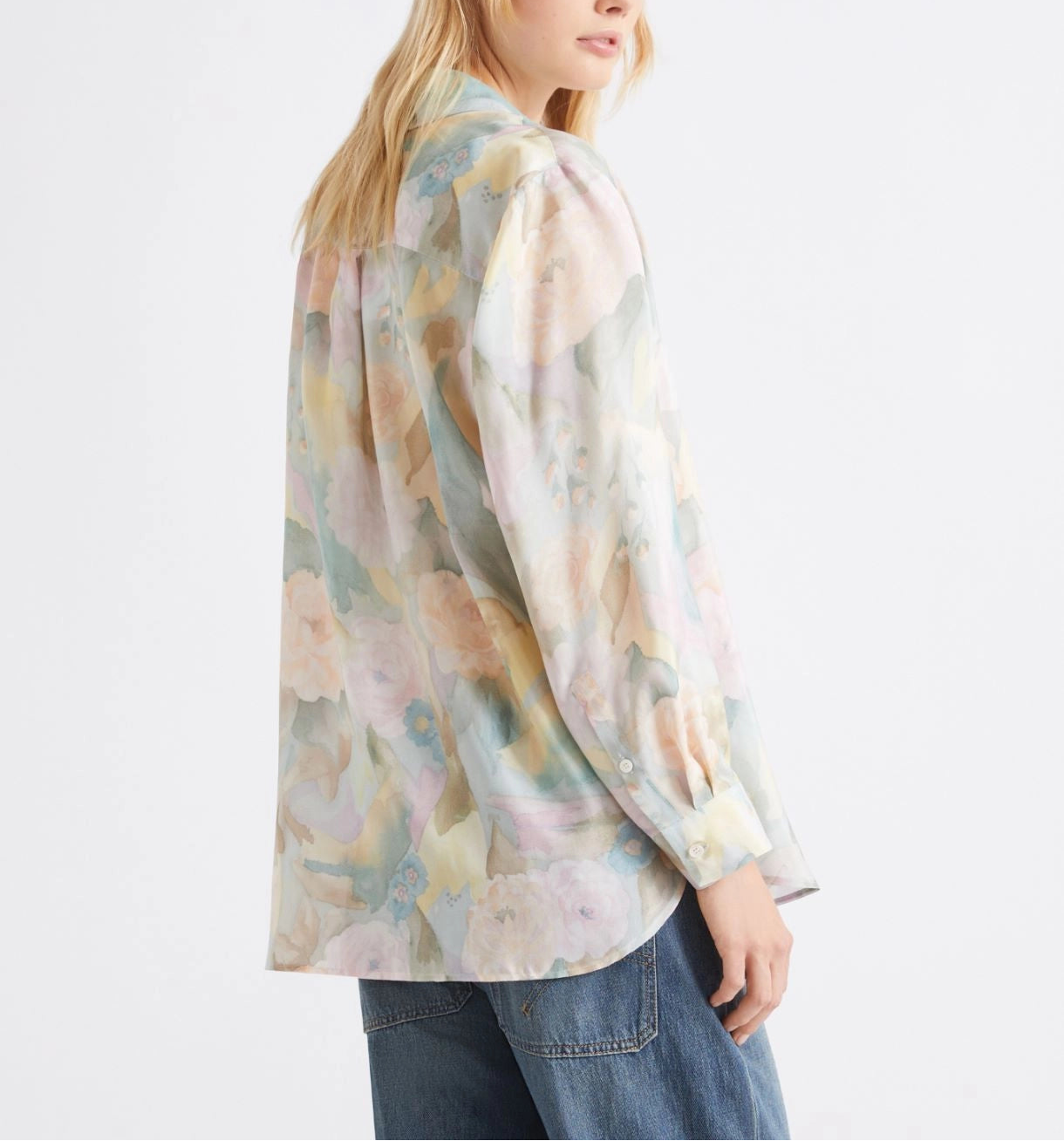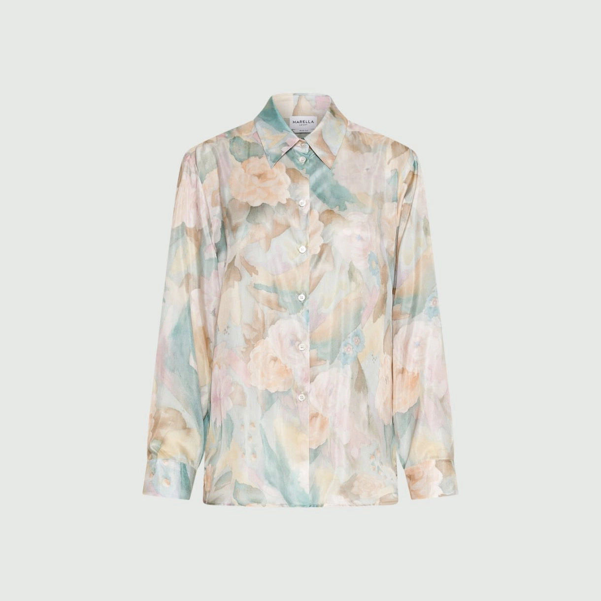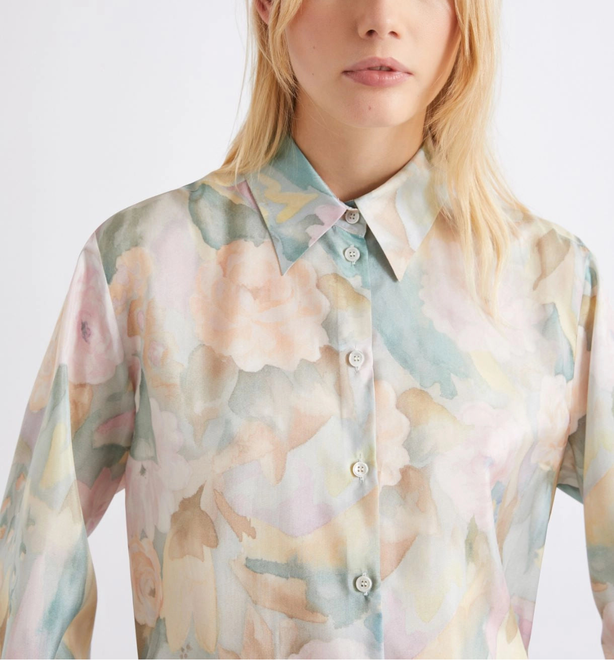 Blusa 100% seda | Esta camisa em seda pura Habotai é decorada com uma delicada estampa em tons pastel. O modelo leve e elegante pode ser combinado com calças de alfaiataria, saias ou jeans, permitindo diversas combinações. Camisa em tecido Habotai de seda pura estampada | Corte regular | Gola com fechamento por botões aparentes \ Barra arredondada com fendas laterais