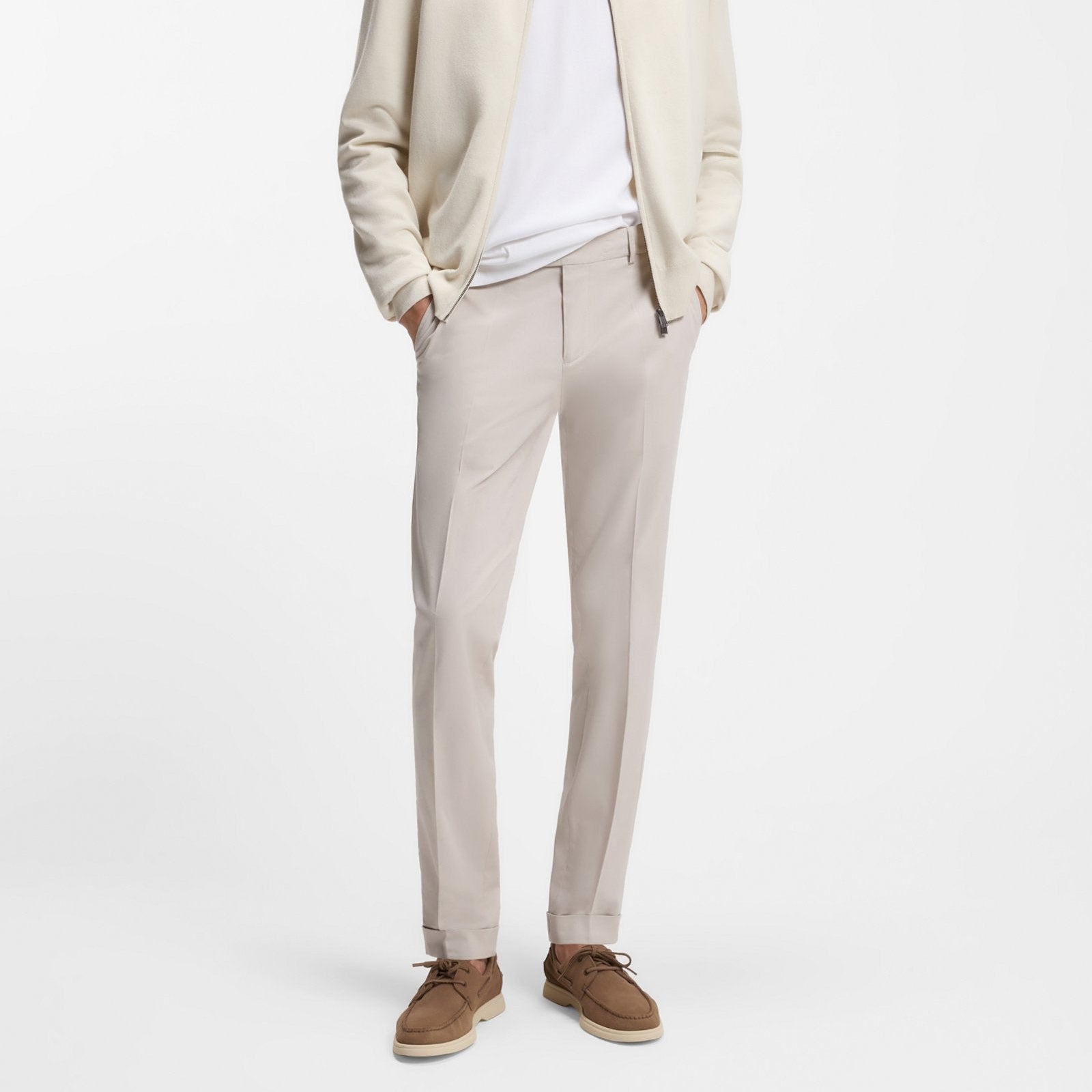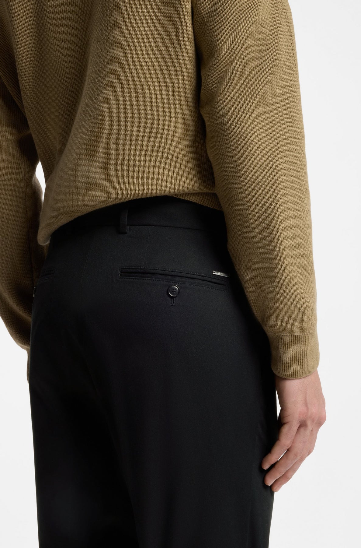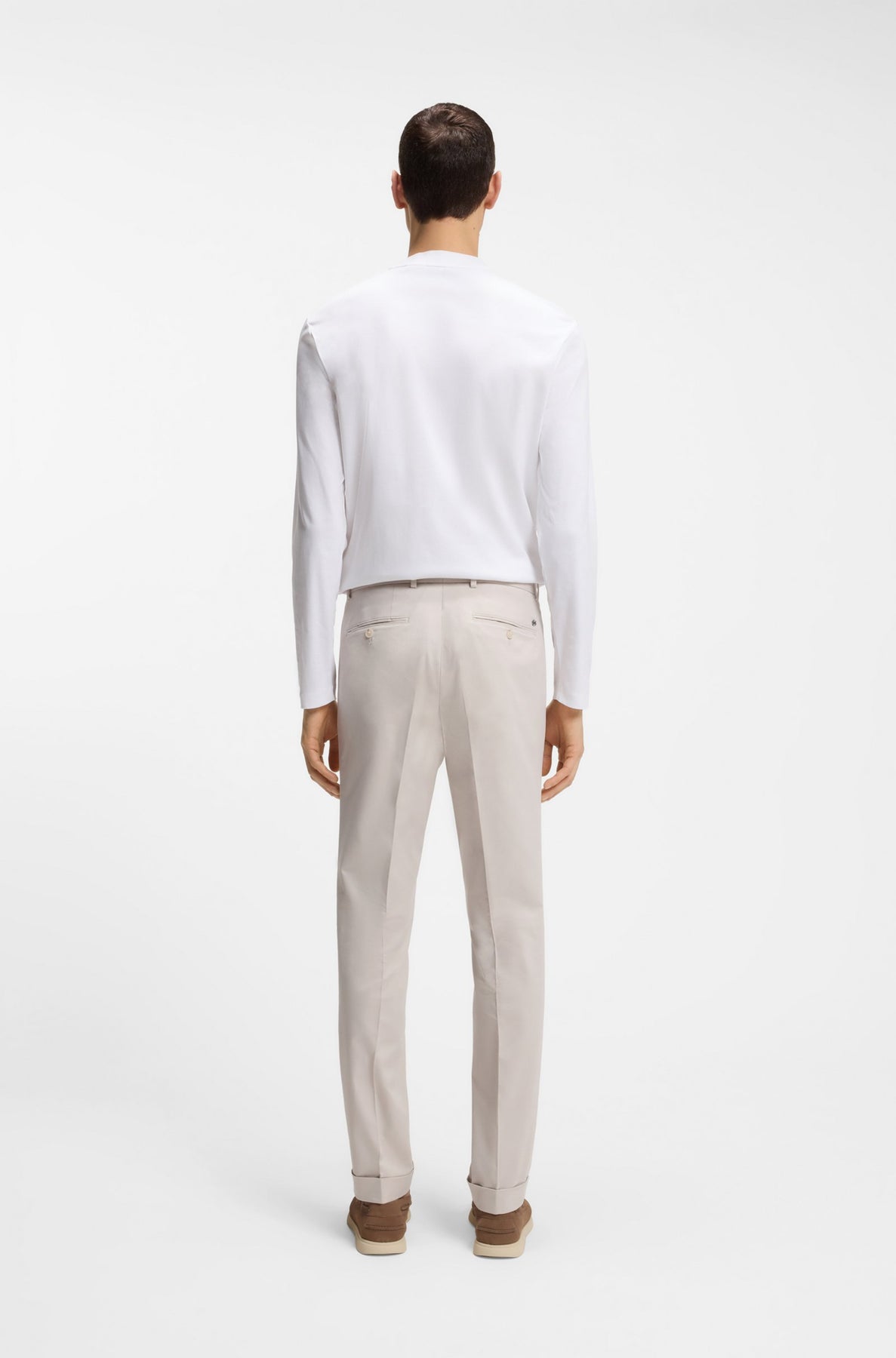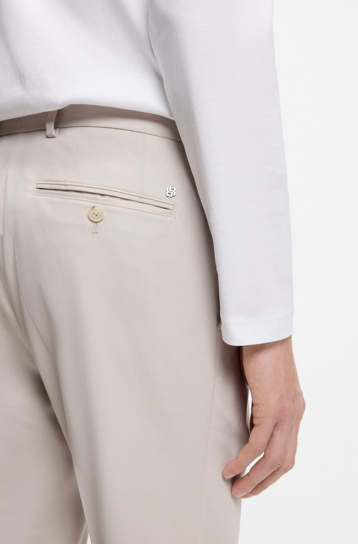 Calças 98% Algodão, 2% Elastano | Com ajuste slim e bainhas viradas, estas calças BOSS Menswear são laváveis à máquina para um cuidado fácil. Trabalhados em algodão elástico flexível.