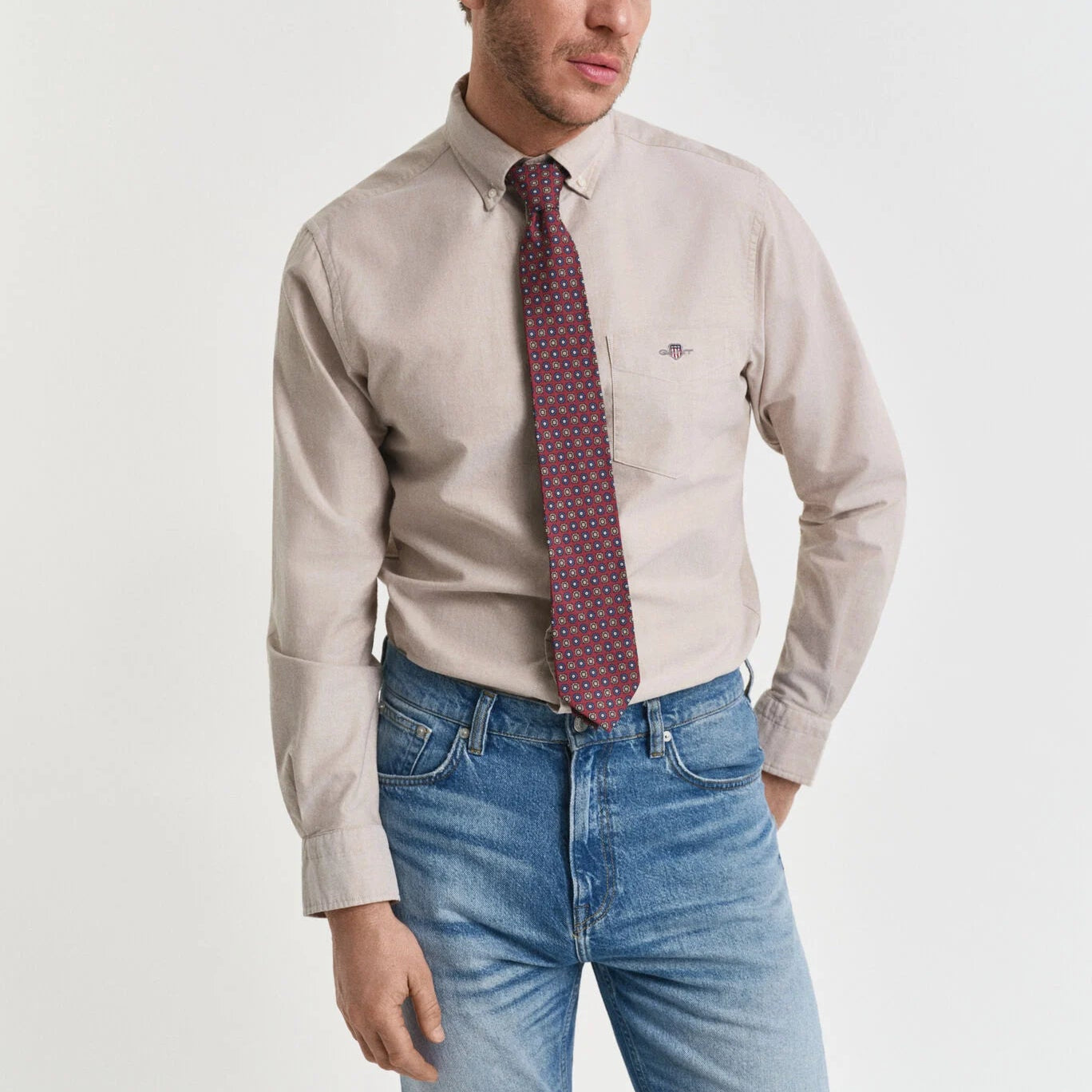 Camisa 100% algodão | Versátil, essencial e apropriada para estilos smart-casual, a camisa Oxford clássica apresenta o nosso icónico Archive Shield bordado. Feito em algodão duradouro, este modelo tem um corte normal, um colarinho com botões, bainha arredondada, punhos ajustáveis e uma prega com a nossa característica presilha na parte de trás.