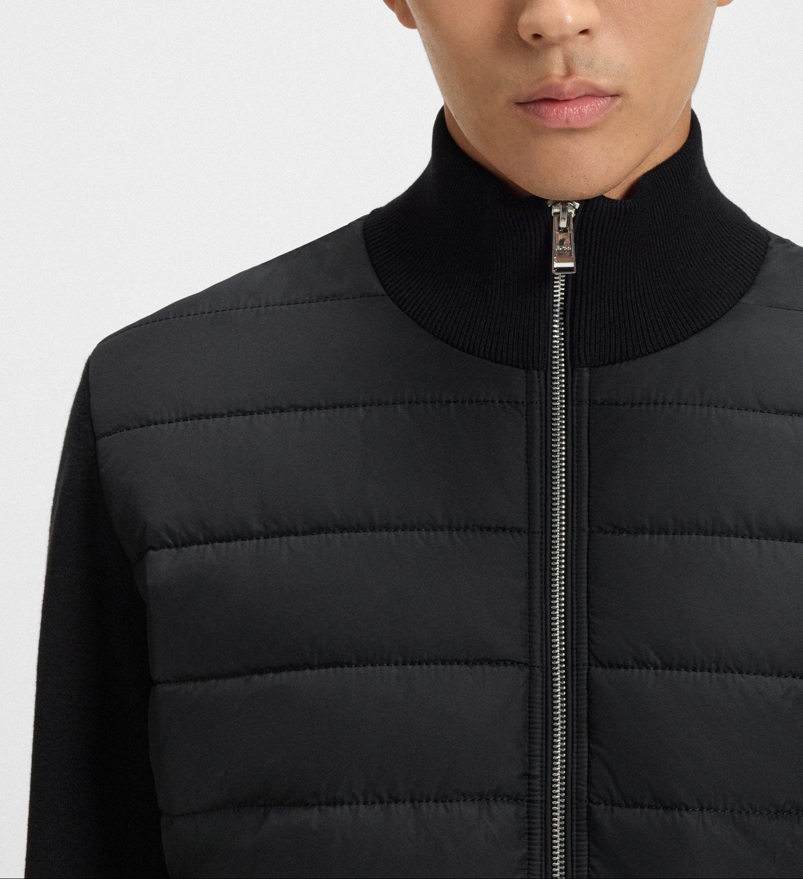 Casaco 70% lã virgem 30% algodão | Um casaco quente BOSS Menswear, ideal para sobrepor. Trabalhado numa mistura de algodão e lã suave com uma parte frontal acolchoada contrastante. Acabamentos em malha canelada aconchegantes. Este produto contém, pelo menos, 60% de matérias-primas melhores. Este produto é feito parcialmente com algodão orgânico. As nossas normas orgânicas não permitem a utilização de fertilizantes sintéticos, pesticidas ou sementes geneticamente modificadas.