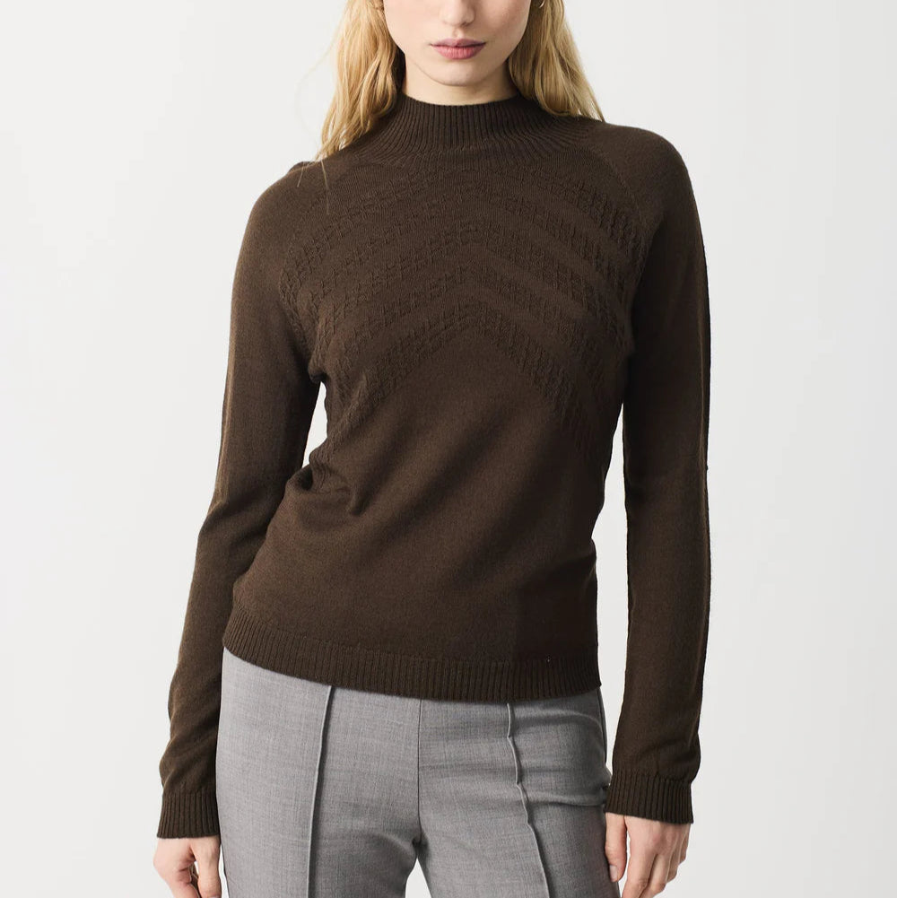 Malha 50% lã 50% acrílico | Suéter Perkins de gola redonda com um elegante detalhe texturizado na frente para um toque sofisticado. Confecionado em lã macia, seu design combina conforto e estilo, ideal para um visual moderno e aconchegante para qualquer ocasião.