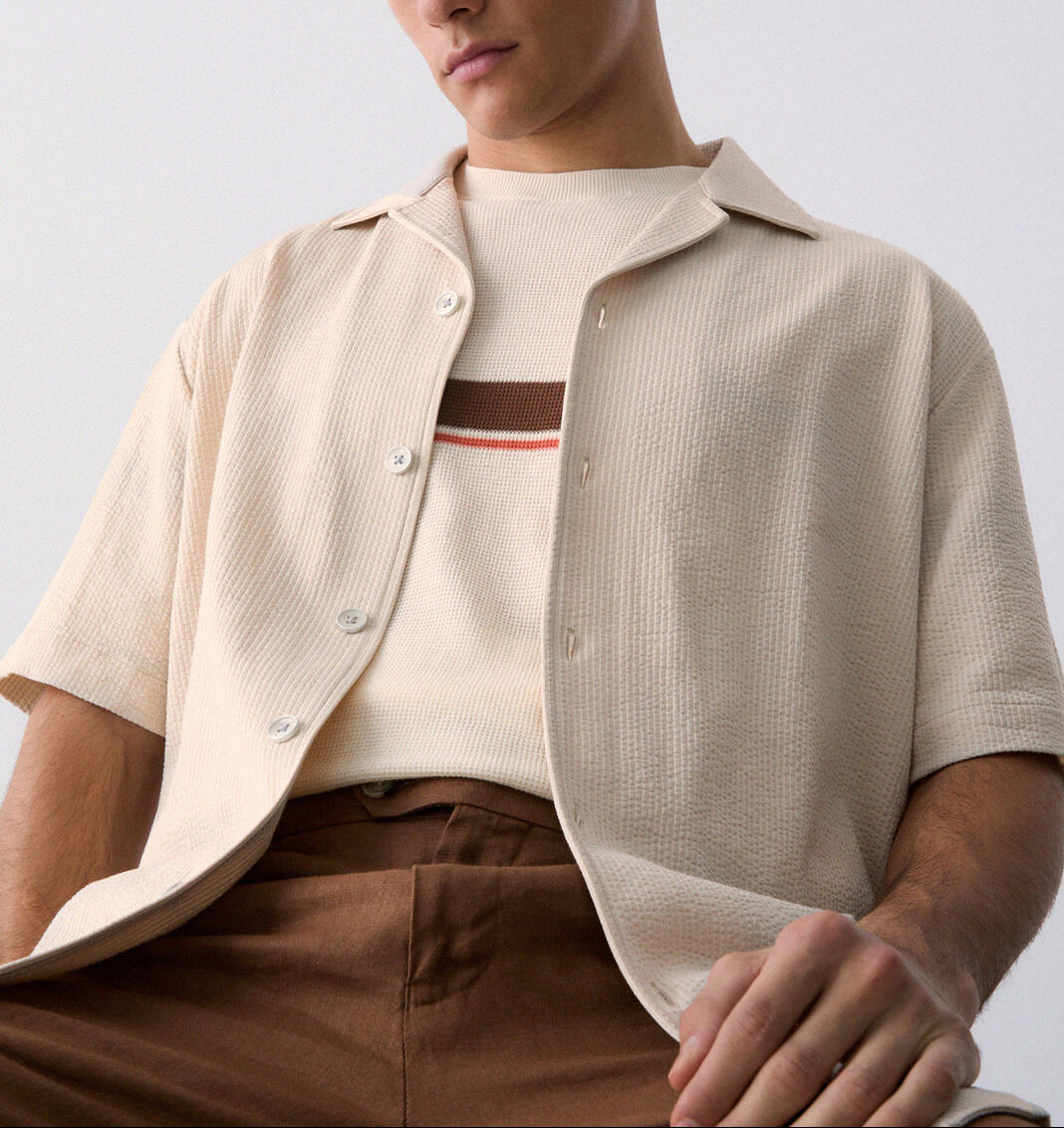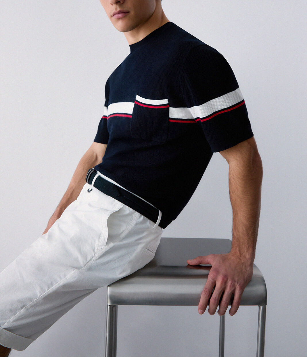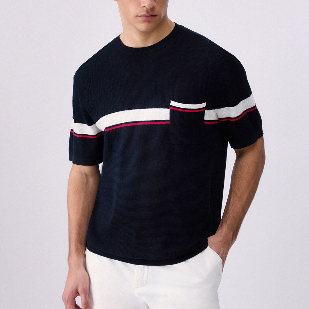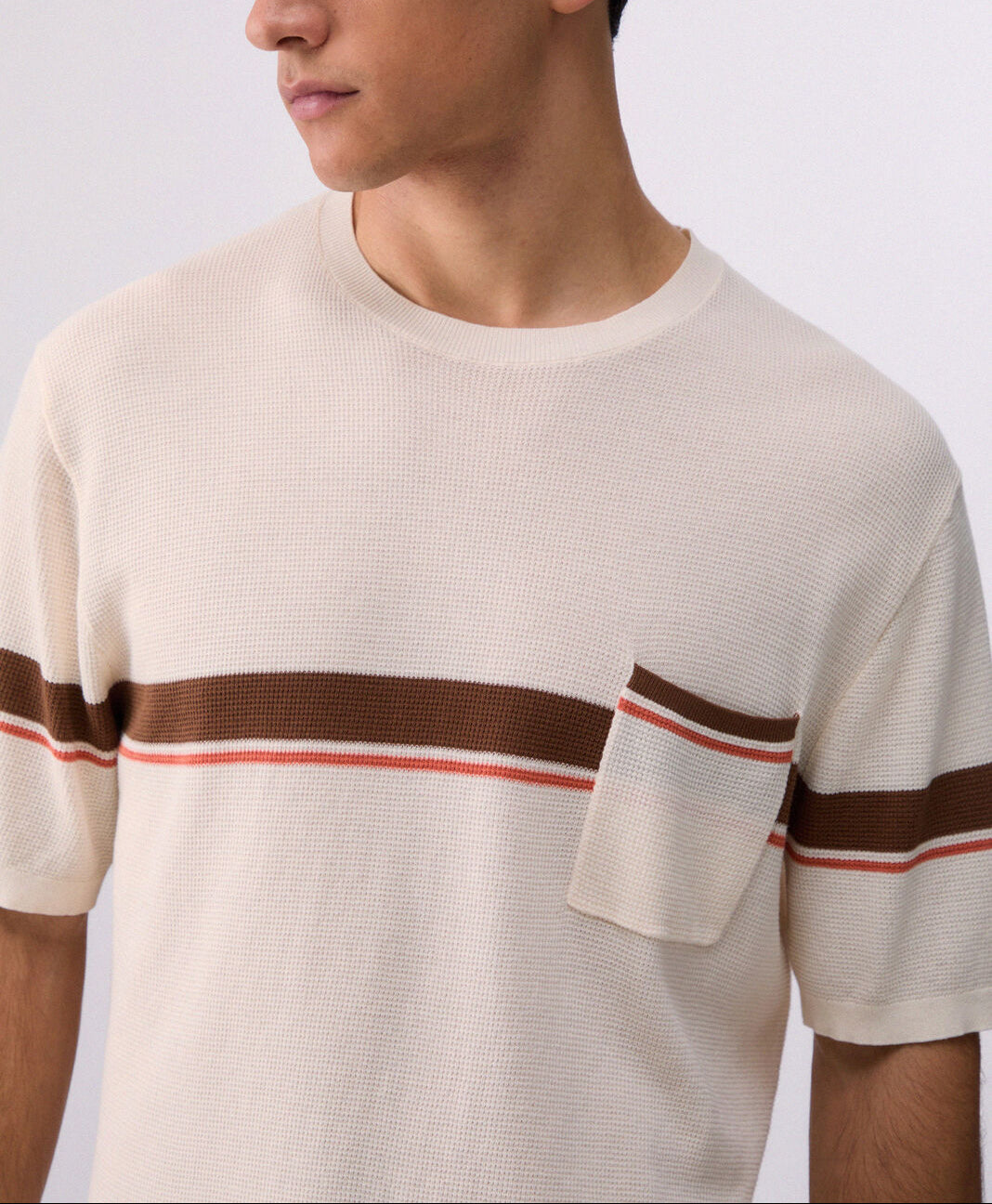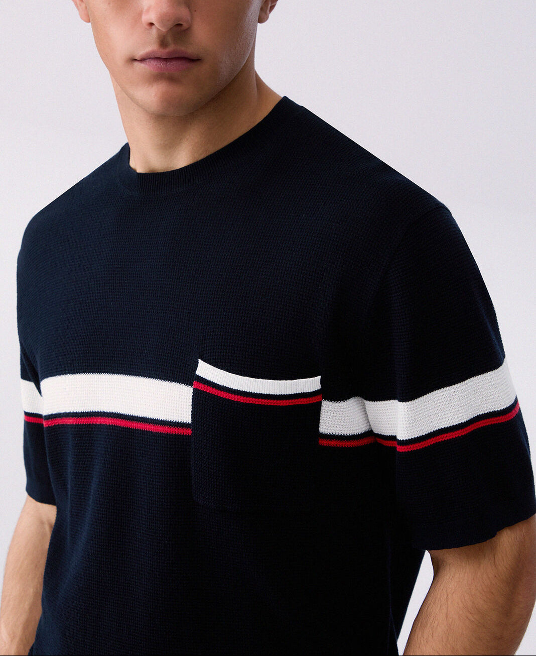 Malha 100% algodão | Camiseta de malha \ Fios de puro algodão | Detalhes em jacquard Bolso no peito | Gola redonda | Mangas curtas