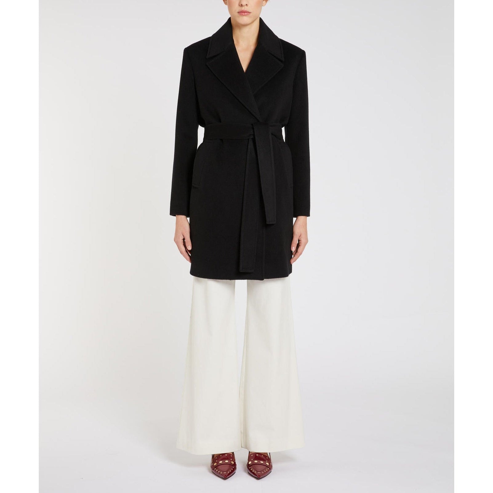 Casaco 90% lã virgem 10% cachemira | Casaco de lã e caxemira - Corte reto - Gola de lapela - Fecho de botões com cinto e abotoamento duplo - Bolsos laterais embutidos - Peça forrada