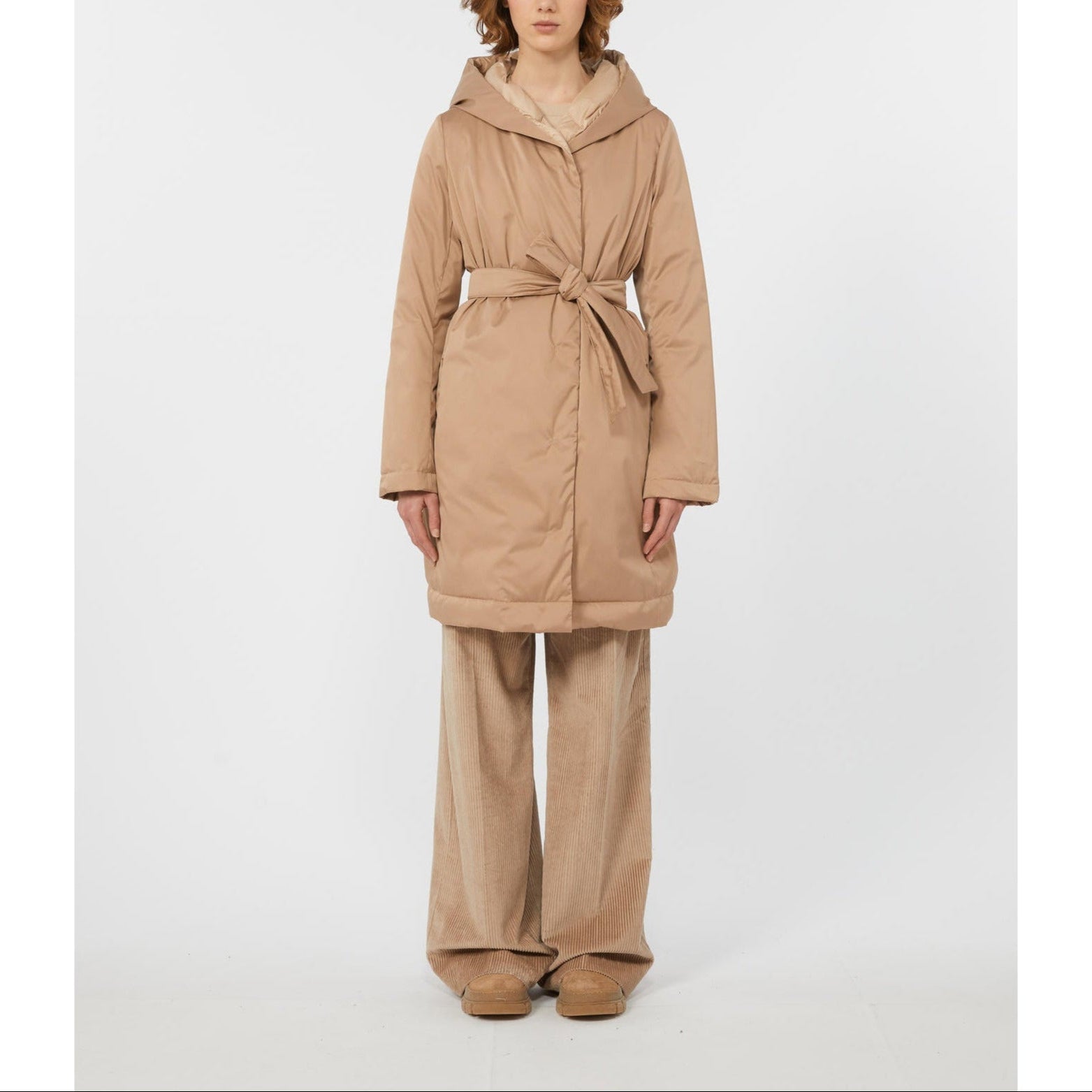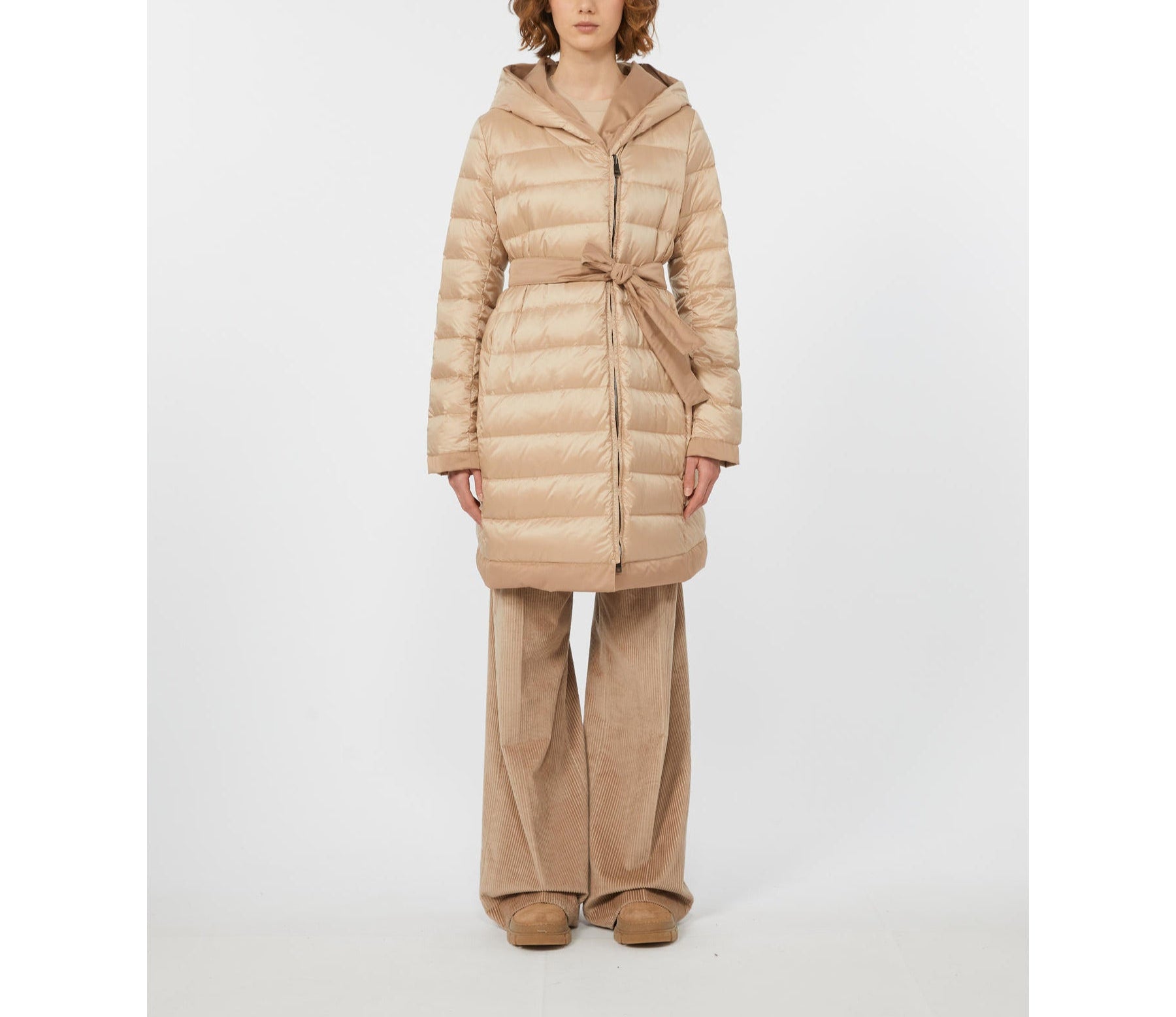 Parka 100% poliéster | Anoraque impermeável em tecido técnico. - Corte reto. - Gola alta com capuz e manga com tecido. - Fecho com botões de pressão e cinto de segurança. - Bolsos laterais embutidos. - interior de pluma de ganso.