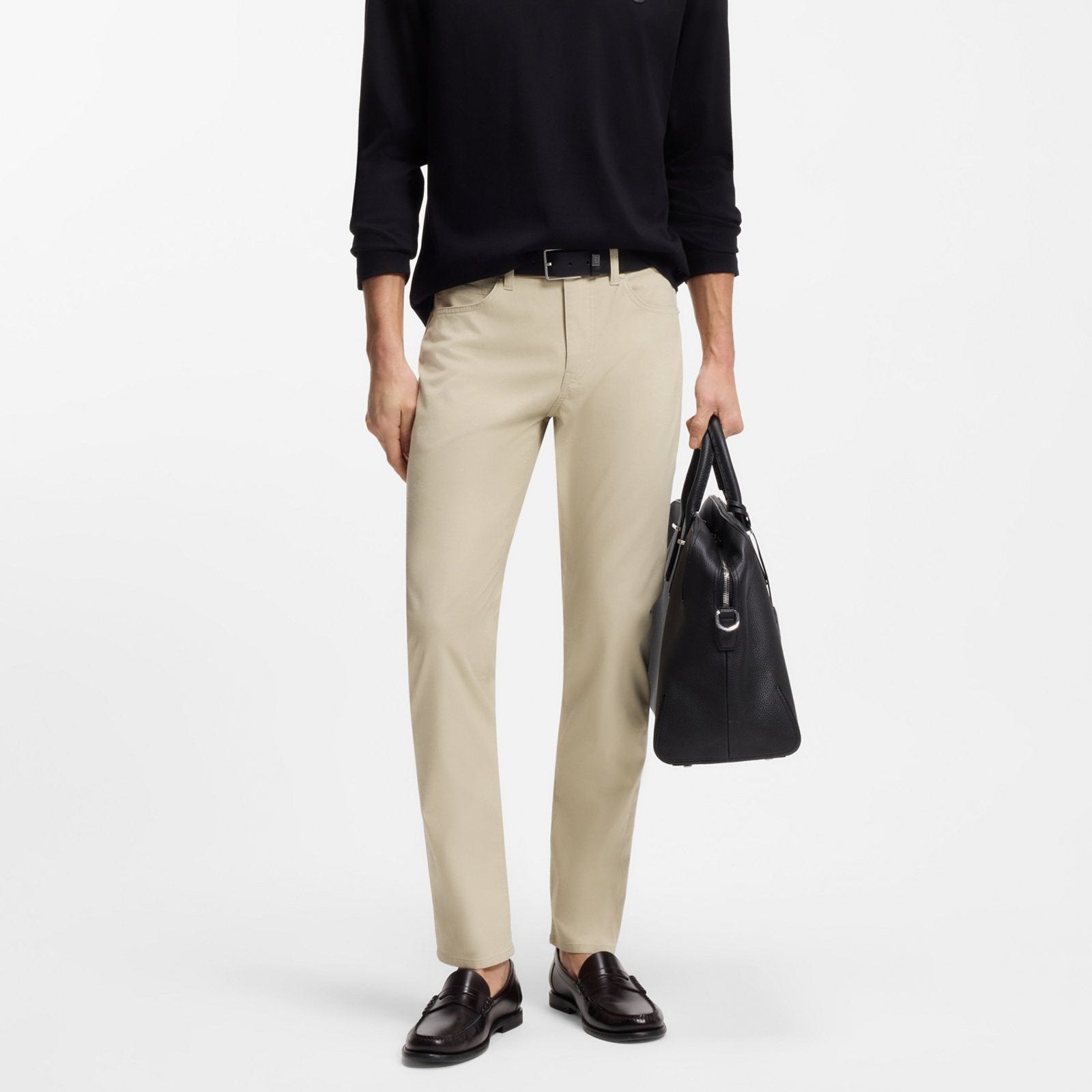 Calça 54% algodão 42% poliéster 4% elastano | Estas calças masculinas BOSS em algodão escovado com elasticidade e propriedades termorreguladoras são incrivelmente versáteis. Corte slim. Corte slim | Cintura regular \ Fecho com botão e zíper \ Perna afunilada \ Bolsos frontais inferiores: Bolsos laterais \ Bolsos traseiros inferiores: Bolso embutido