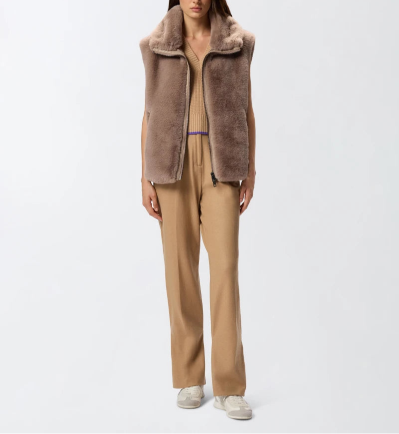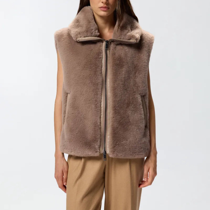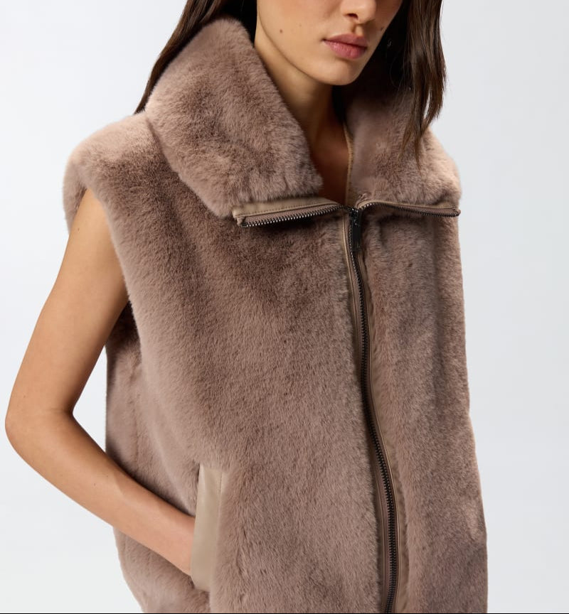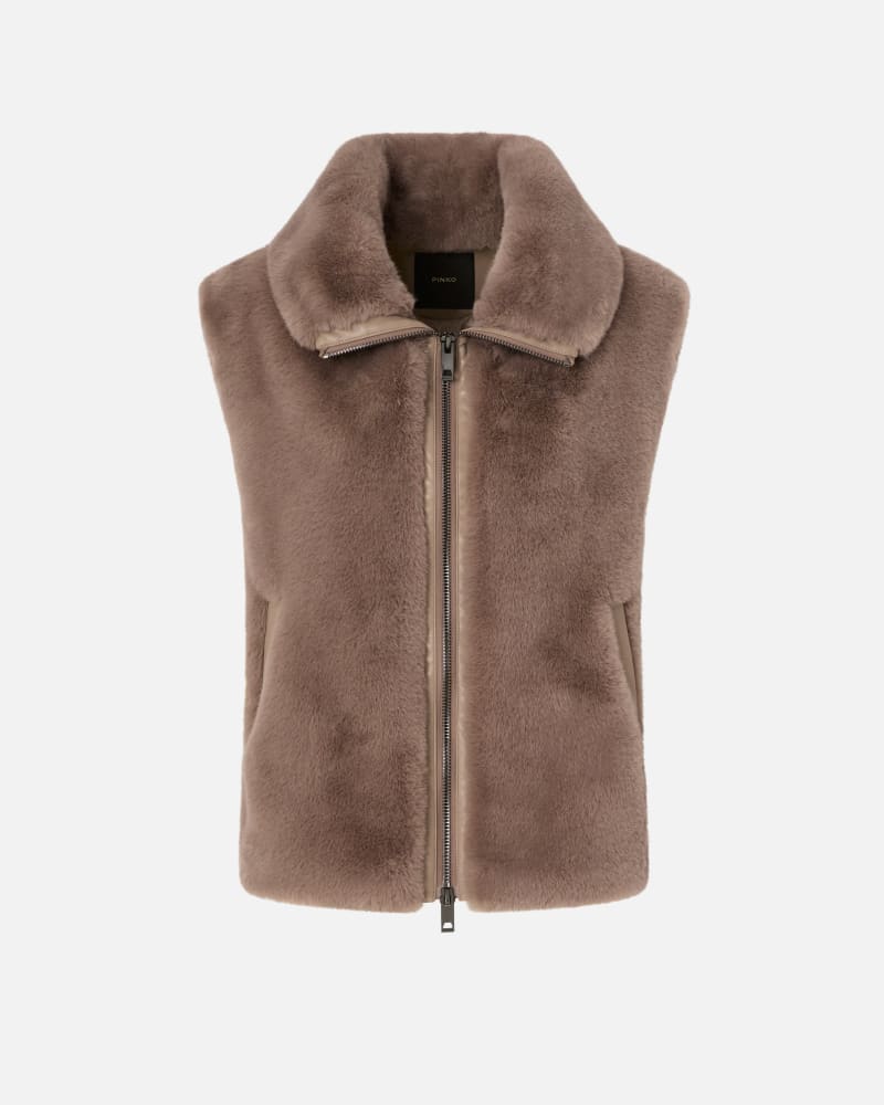 Colete 100% poliéster | Colete em tecido Aspen com pele sintética, gola alta, fecho de zíper frontal e bolsos laterais práticos. Enfrente os dias mais frios com o estilo PINKO com este design marcante para o seu guarda-roupa de inverno. Esta peça é particularmente versátil e pode ser facilmente combinada com uma saia elegante ou uma calça jeans para ocasiões mais casuais.