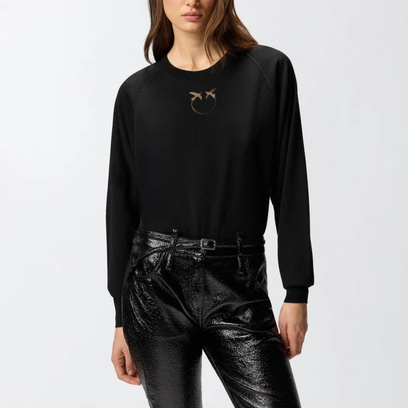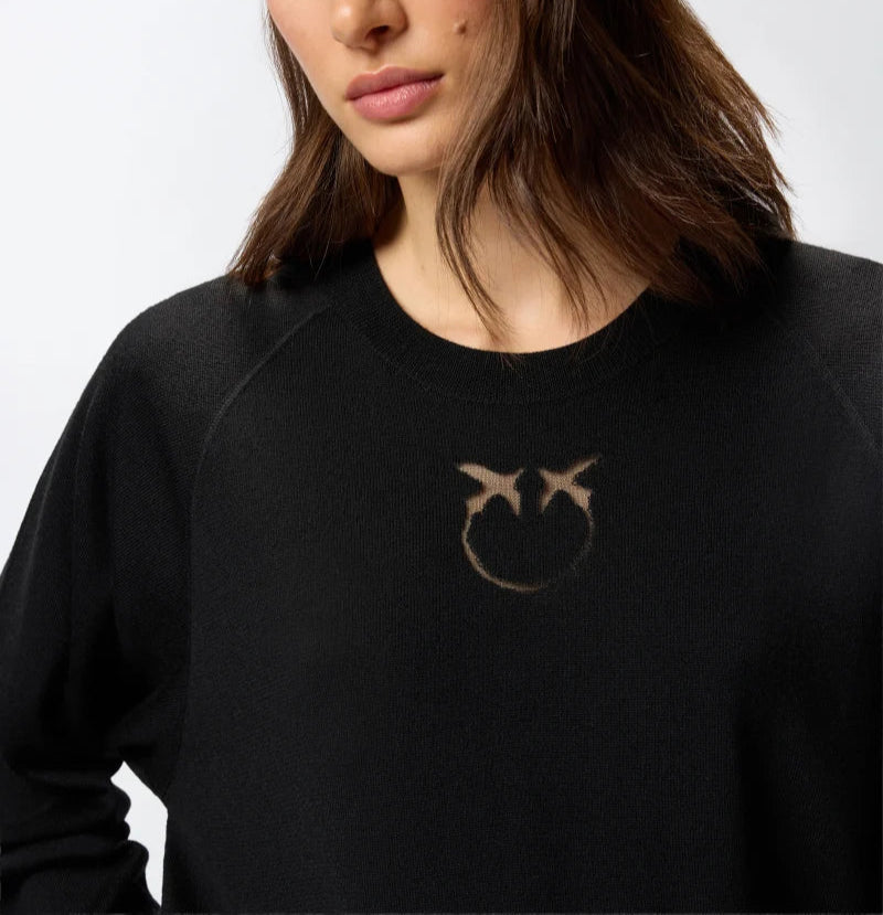 Camisola 79% lã 15% poliamida 6% poliéster | Suéter de manga comprida com gola redonda em lã merino pura, extremamente leve e versátil. A parte frontal apresenta o icônico logotipo Love Birds em forma de incrustação transparente, feita com técnica dévoré, que expressa plenamente o DNA da marca. Já a parte de trás da peça apresenta pespontos aparentes que lembram o formato de uma pala. Gola redonda, bainha e punhos em malha canelada. A peça passou por testes de acabamento para minimizar a possível formação de pilling, garantindo maior maciez e durabilidade do tecido.