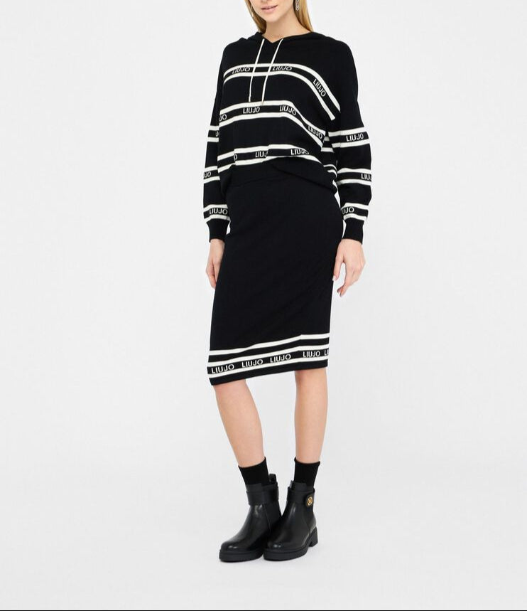 Saia 62% Viscose 38% Polyester | Saia midi preta \ Feita em malha com mistura de viscose | Cós elástico \ Estampa listrada com logo jacquard \ Produto "Liu Jo Better"