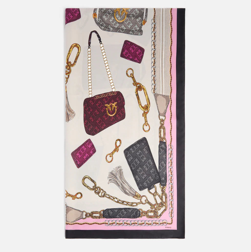 Lenço 65% viscose 35% seda | Lenço confecionado em sarja macia de mistura de seda. Este modelo é adornado com uma estampa integral | com bordas contrastantes e a logomarca da marca no canto. Um acessório original e feminino, perfeito para dar um toque final PINKO aos seus looks.