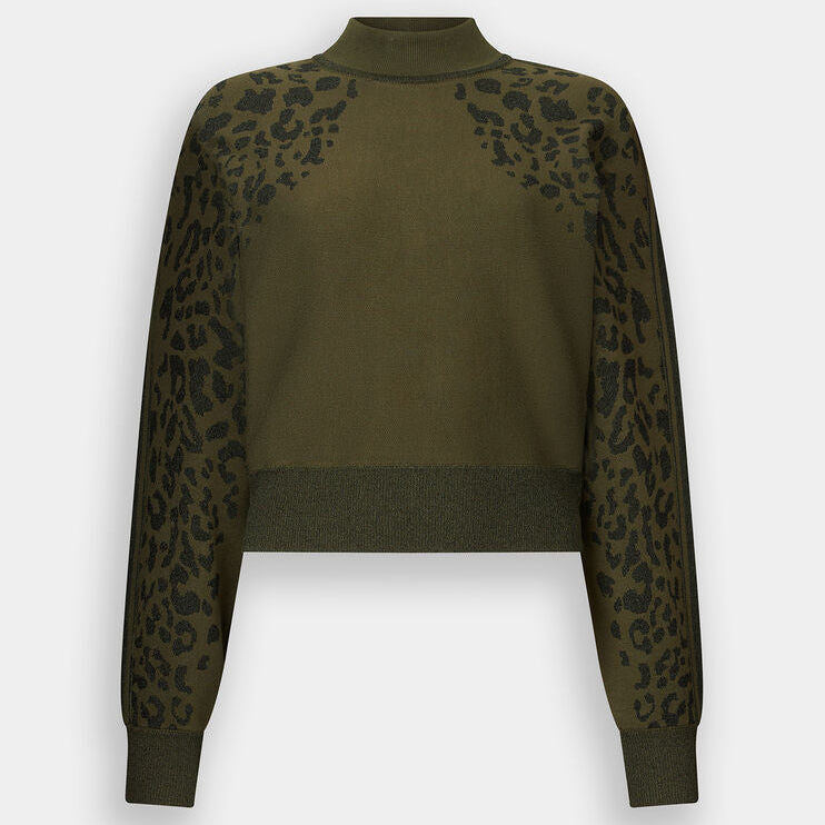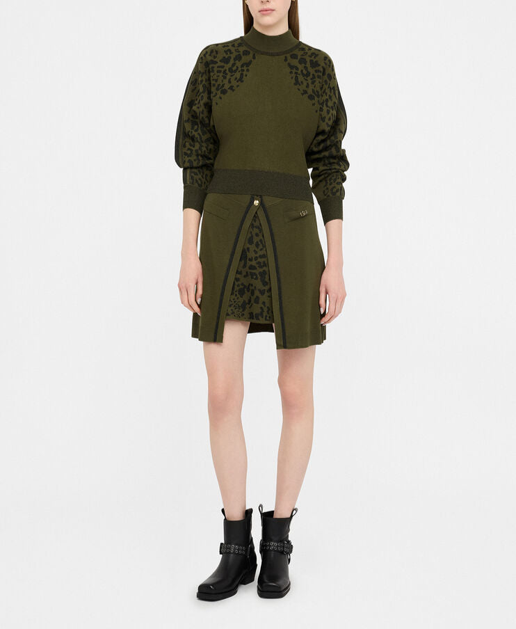Malha 64% Viscose 16% Poliamida 13% Polyester 7% Metallic Polyester \ Blusa em mistura de viscose e lurex® \ Estampa animal | Gola alta | Mangas compridas | Bordas caneladas | Logotipo metálico nas costas | Produto "Liu Jo Better"